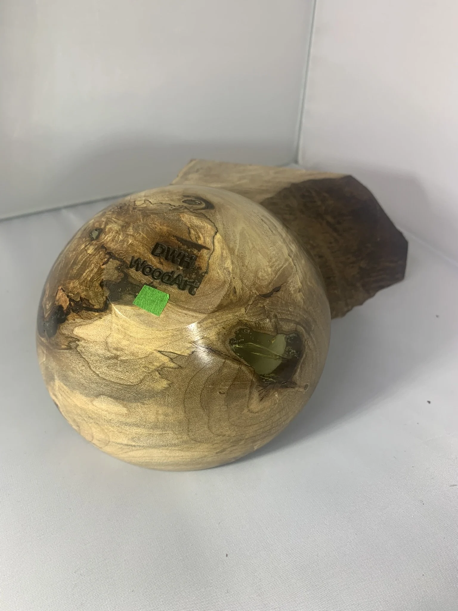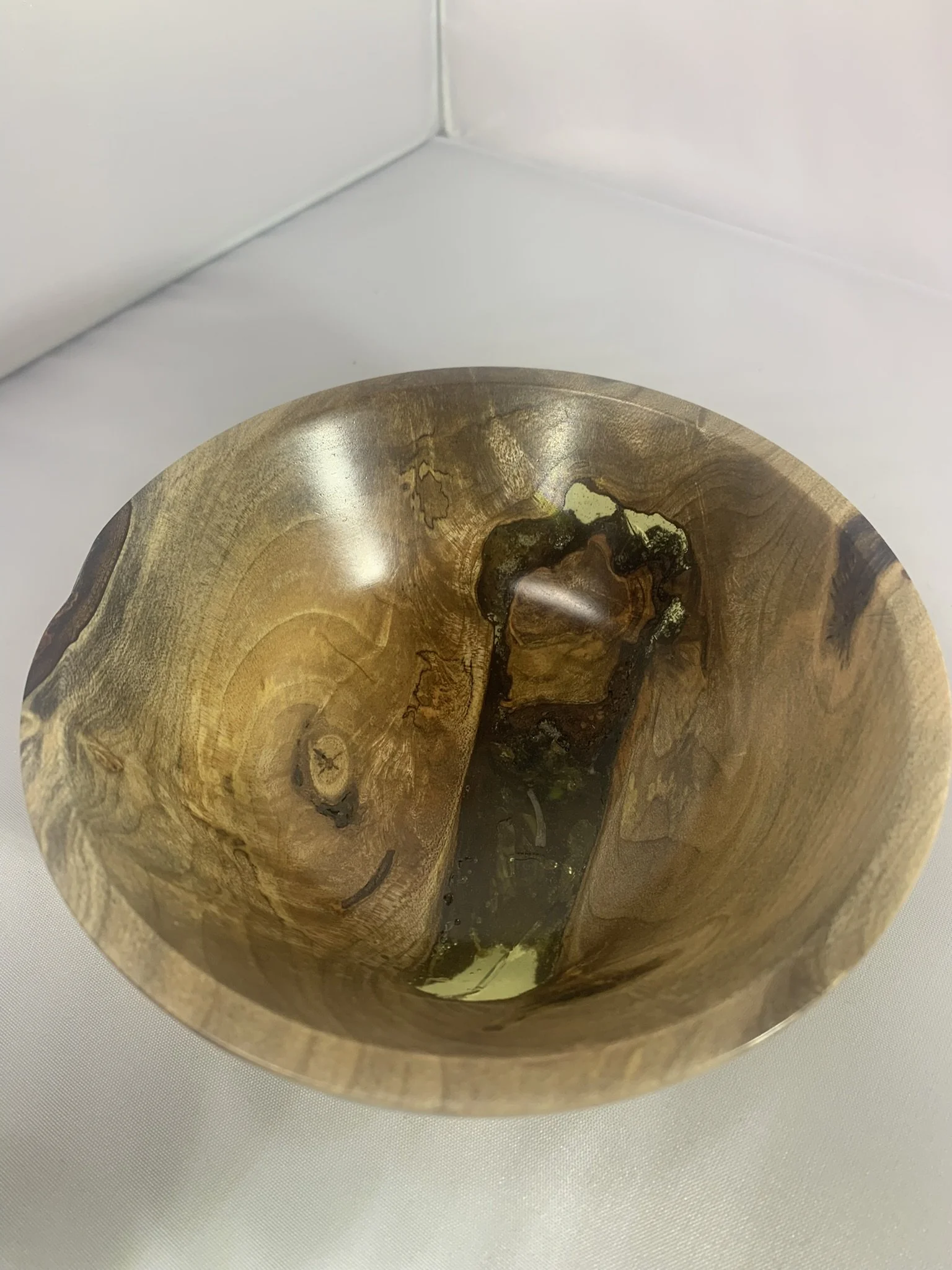 300-02 Small maple crotch wood 5 x 2 candy dish. Wet/dry food safe. Crazy resin filled voids and figure in this small artistic piece.$50 Shipped free in the US