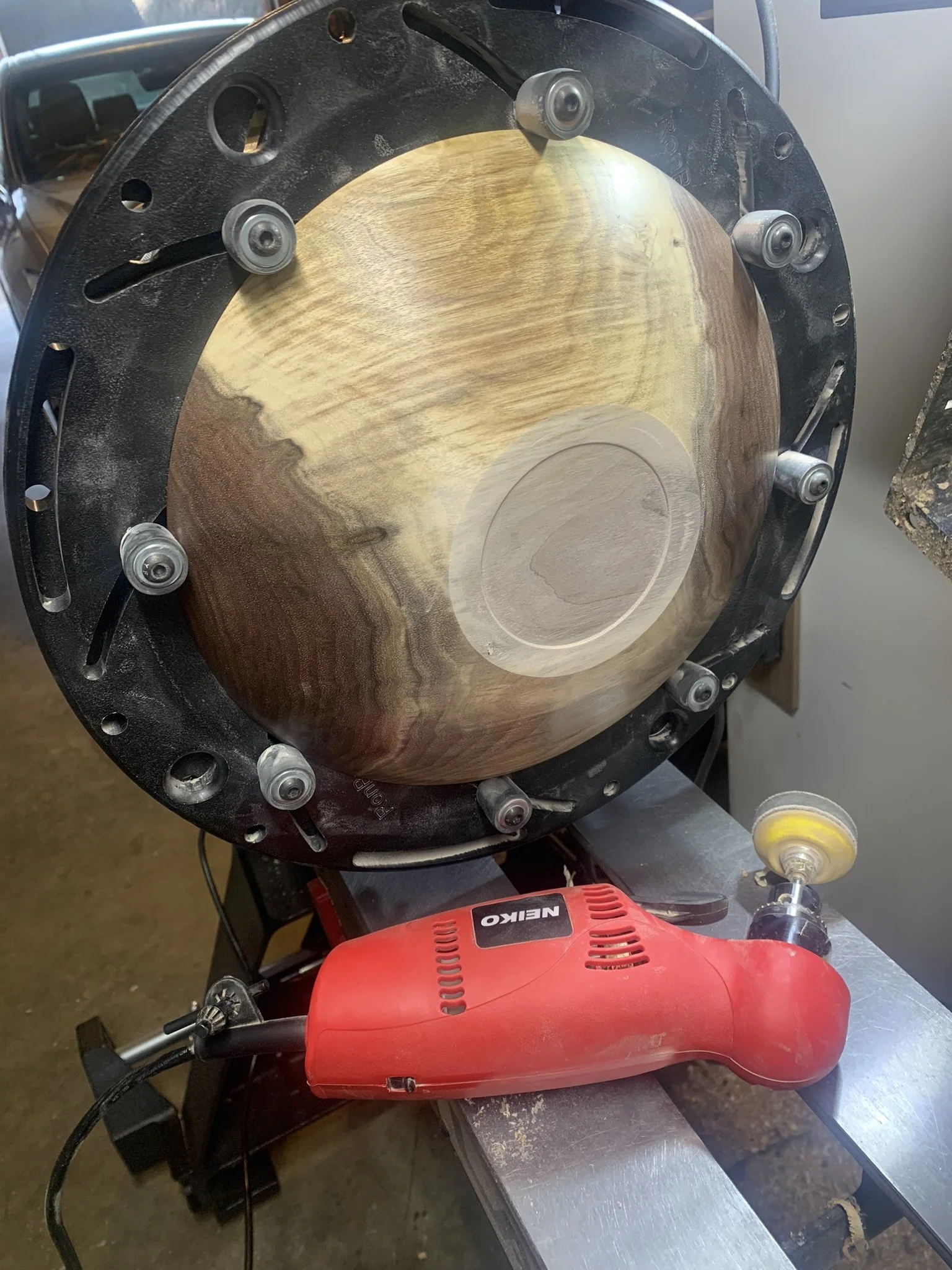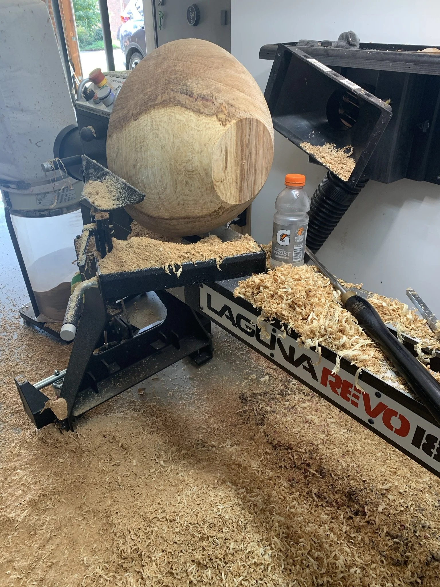 I use 99% reclaimed Timber from Storm damage or trees that had to be removed for construction or disease. It’s starts with milling blanks from green wood, then “rough turning”. Several months later the piece can be “finish turned” and food safe finish applied. The turning is flipped and the bottom is then completed. Normally 6 to 12 months from beginning until delivery of the bowl to the customer.
